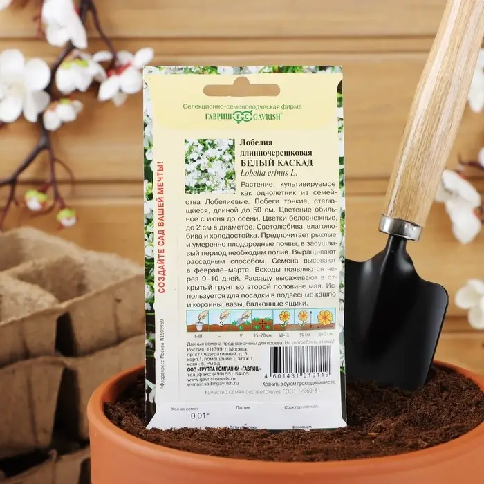 Семена цветов Лобелия ампельная "Белый каскад", ц/п, 0,01 г