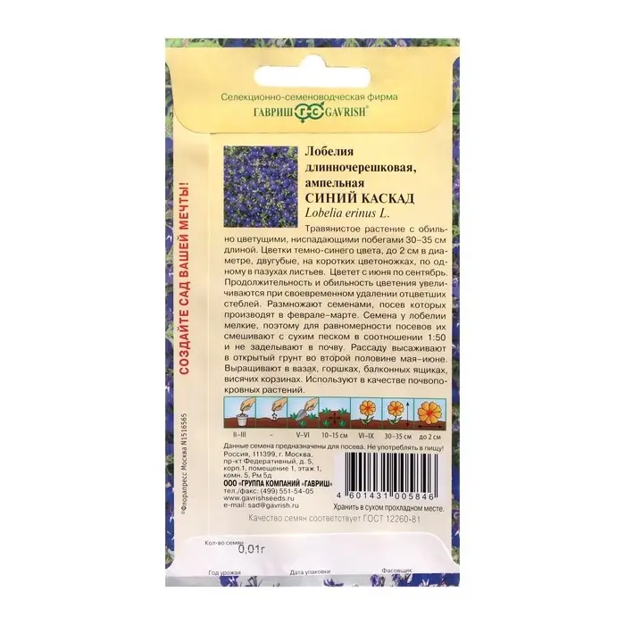Семена цветов Лобелия ампельная "Синий каскад", ц/п, 0,01 г