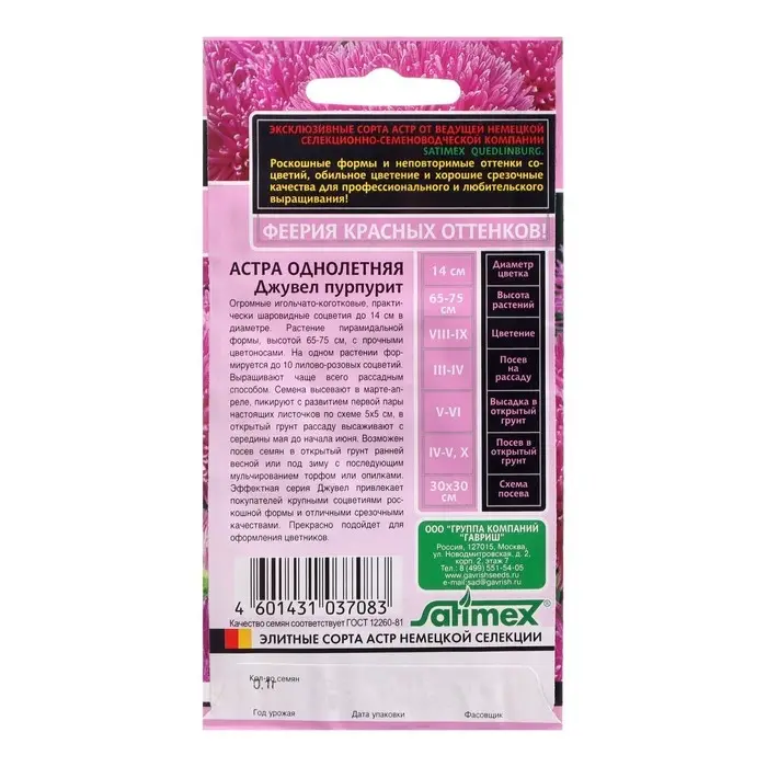 Семена цветов Астра однолетняя (игольчато-коготковая) "Джувел Пурпурит", ц/п, 0,05 г