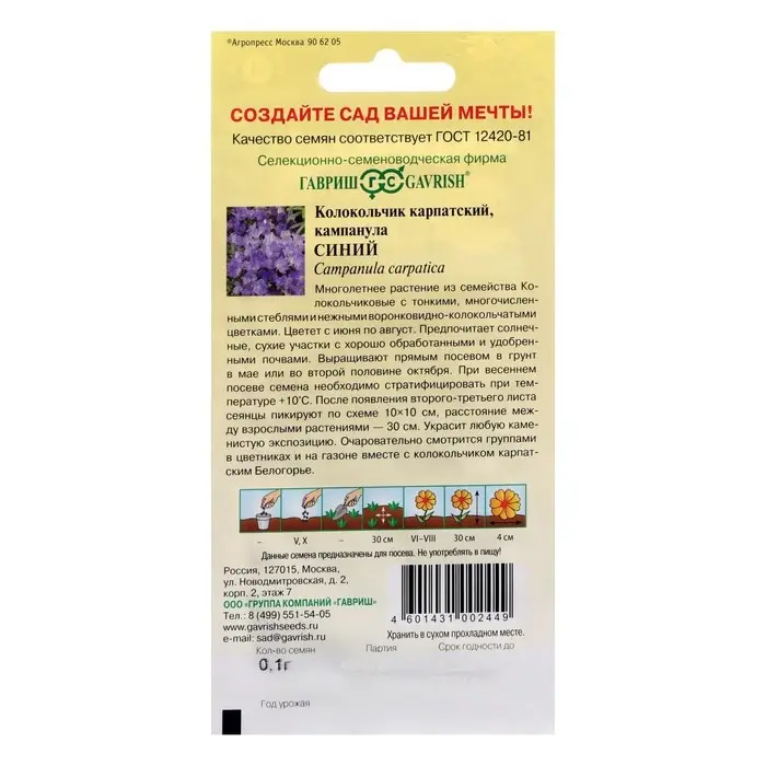 Семена цветов Колокольчик карпатский Белый, 0,1гр