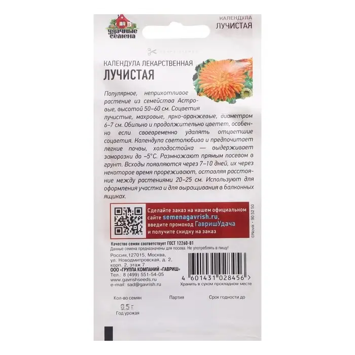 Семена Календула "Лучистая", ц/п, 0,3 г