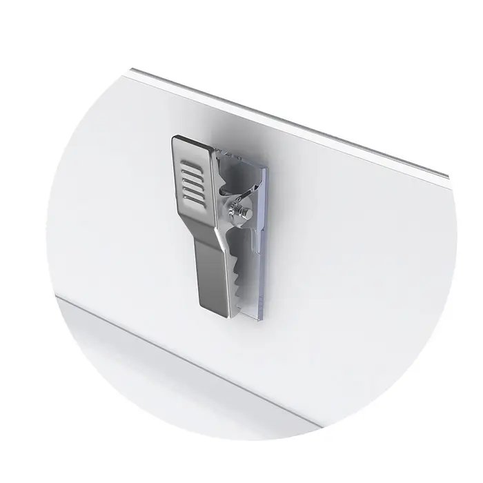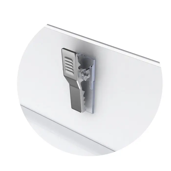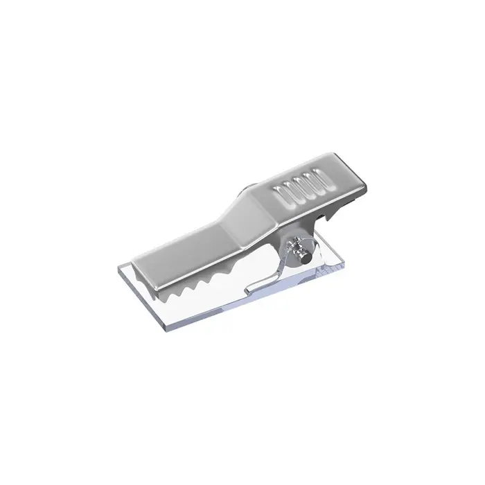Бейдж из высококачественного прозрачного пластика с металлическим зажимом и булавкой.