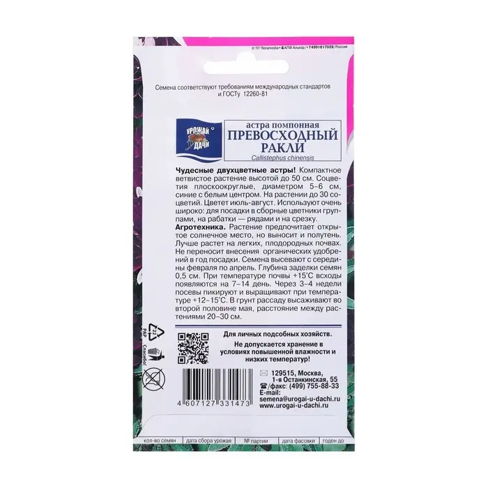 Семена цветов Астра помпонная "Превосходный Ракли", 0,2 г