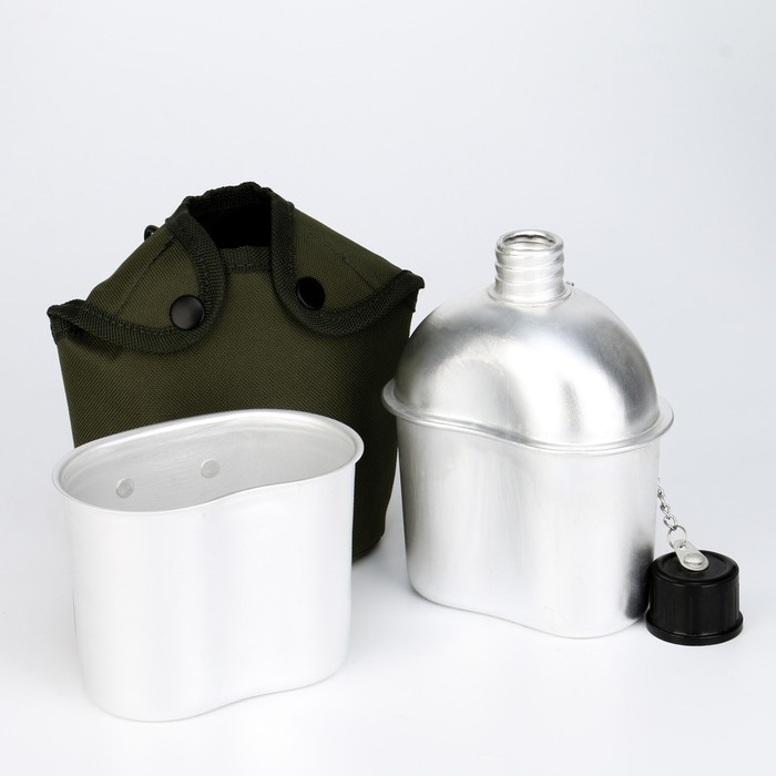 Фляжка армейская походная "Аdventure" 1 л для воды, с котелком, металл, зелёная, цифра