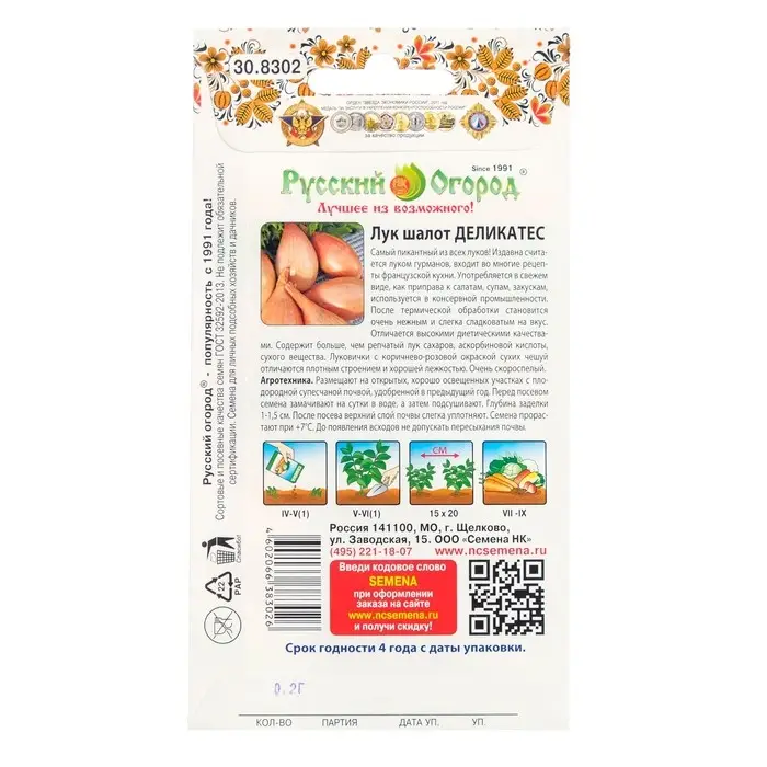 Лук шалот славится своим ранним созреванием. Он хорошо хранится, луковицы у шалота плотные и долго лежат. Обладает высокой холодостойкостью, что позволяет ему храниться без потерь при температуре -10 -15 градусов.