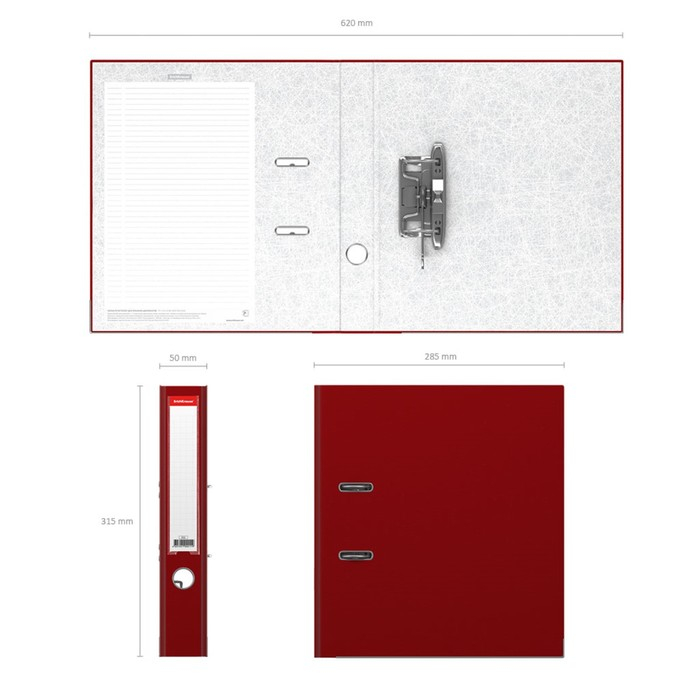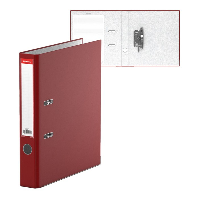 Папка-регистратор А4, 50мм "Бизнес", собранная, бордовая, пластиковый карман, металлический кант, картон 2мм, вместимость 350 листов
