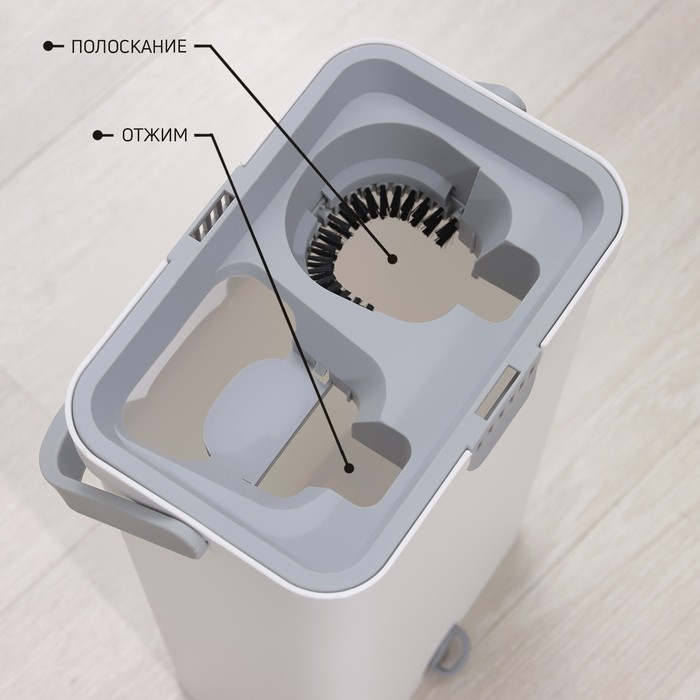 Швабра с отжимом и ведро Доляна: швабра плоская, ведро с двумя отсеками, 8 л, дополнительная насадка