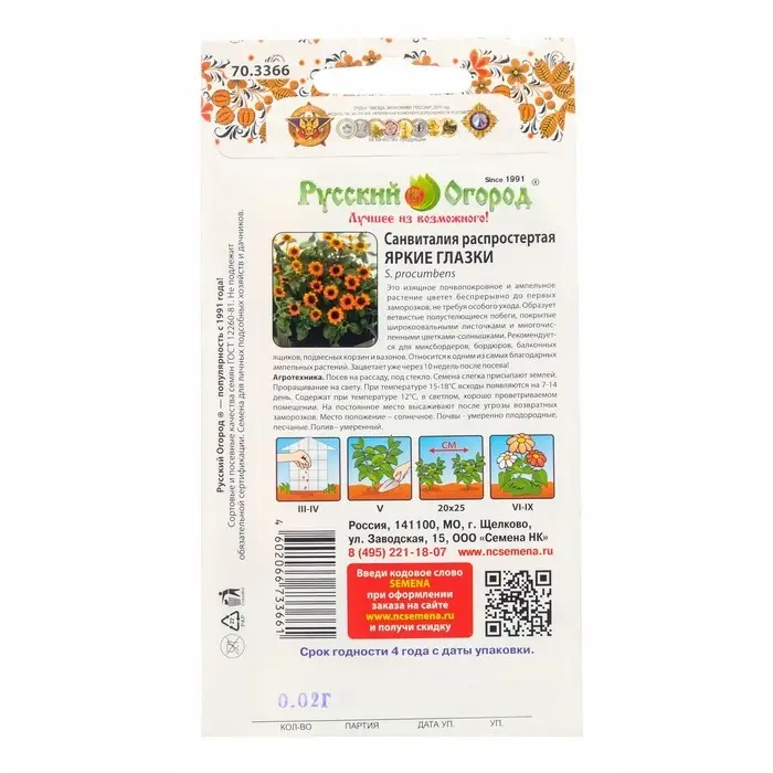 Семена цветов Санвиталия "Яркие глазки", 0,02 г