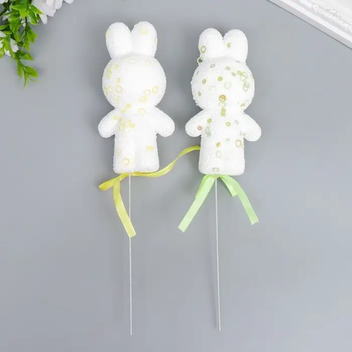 Набор топперов для украшения «Зайчата: посыпка, кружочки», 2 шт., жёлтый, зелёный, 12 см