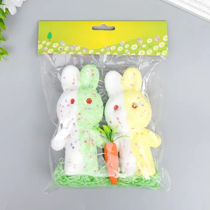 Пасхальный декор «Зайчата в посыпке с морковкой и травкой», набор: жёлтый, зелёный, 12 см, настольная фигурка