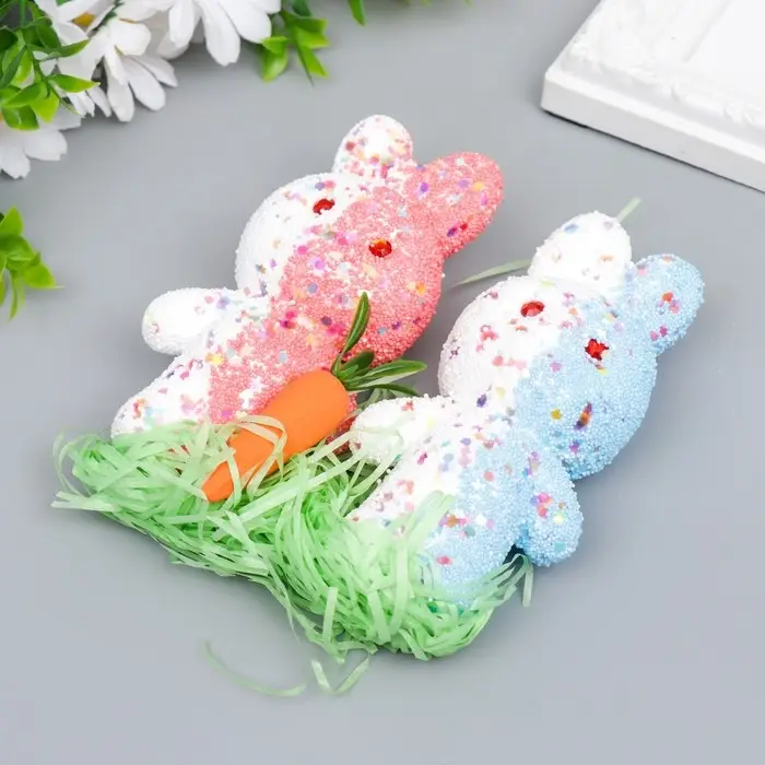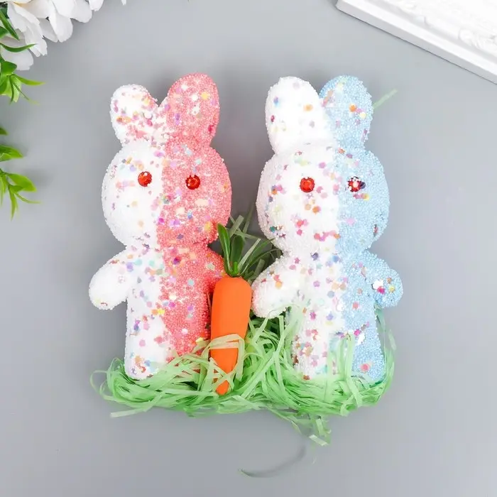 Пасхальный декор «Зайчата в посыпке с морковкой и травкой», набор: розовый, голубой, 12 см, настольная фигурка