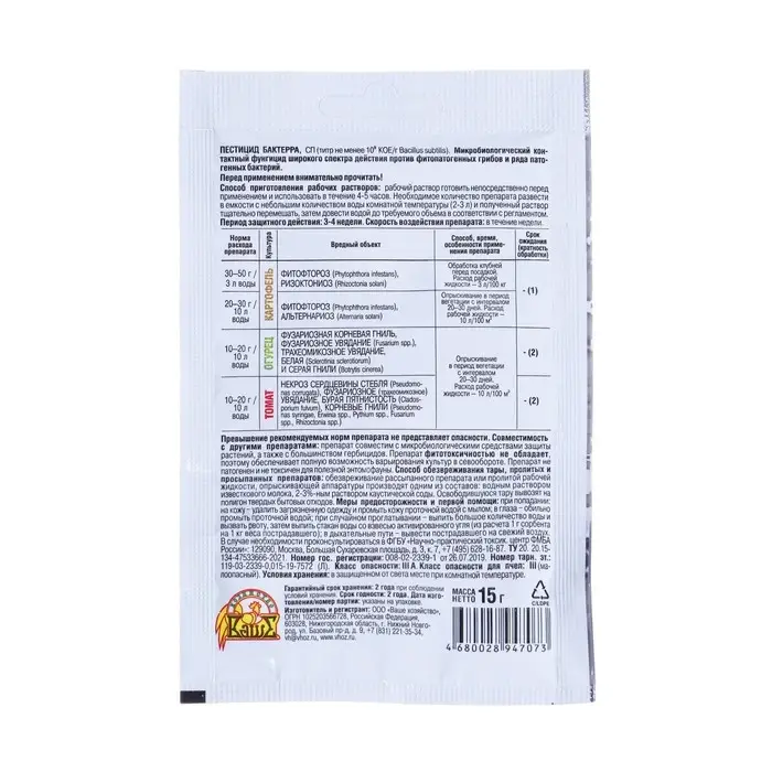 Средство от болезней растений "Ваше хозяйство" "Бактерра", 15 г