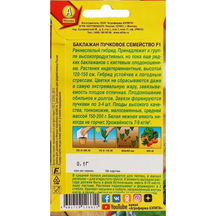 Семена Баклажан "Пучковое семейство", F1, ц/п, 0,1 г