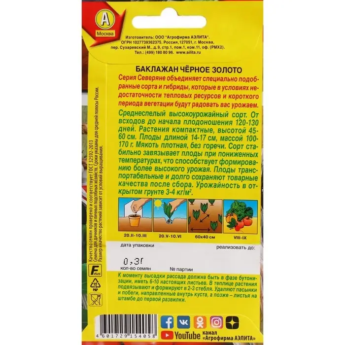 Семена Баклажан "Черное золото", ц/п, 0,3 г