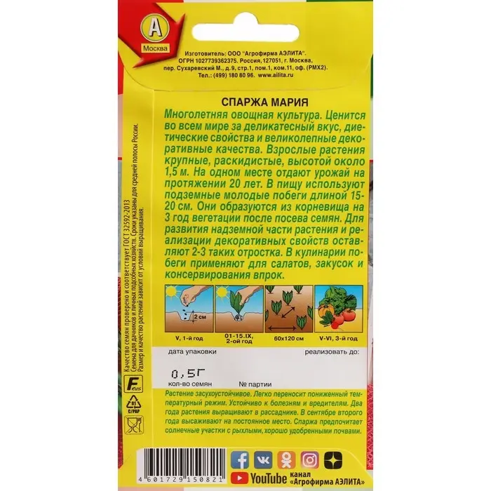 Семена Спаржа "Мария", ц/п, 0,5 г