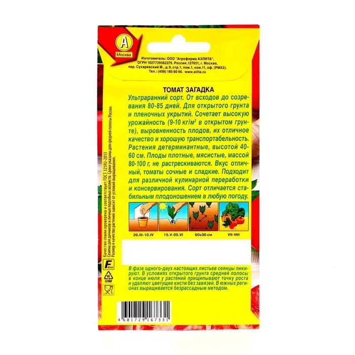 Великолепный сорт идеально сочетающий высокую урожайность, выравненность плодов, их отличное качество и хорошую транспортабельность. Сорт ультраранний (от всходов до созревания 80-85 дней). Растение детерминантное, высотой 30-40 см. Плоды слаборебристые, ярко-красные, плотные, очень вкусные, мясистые, массой 80-100 г. Плодоношение стабильное и длительное в любую погоду. Практически не дает пасынков. Вынослив к пониженной освещенности и комплексу болезней.