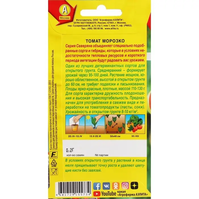 Семена Томат "Морозко", ц/п, 0,2 г