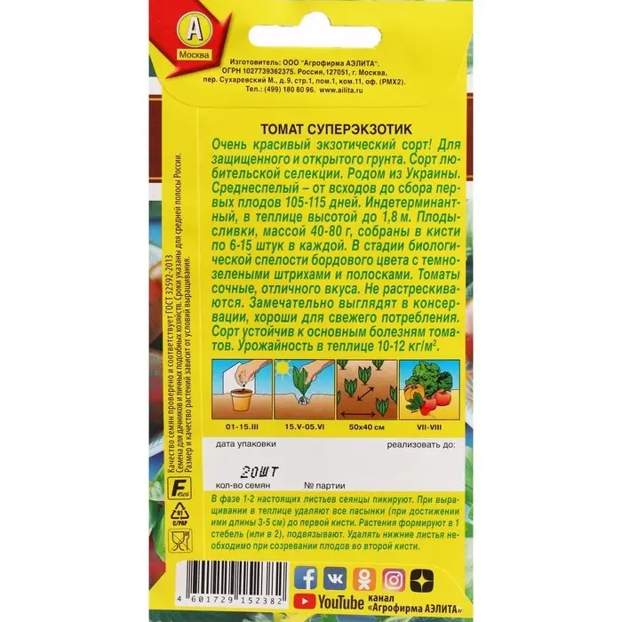 Семена Томат "Суперэкзотик", ц/п, 20 шт
