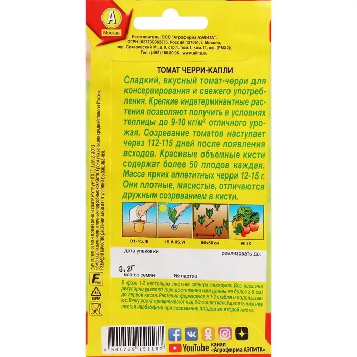 Семена Томат "Черри-капли", ц/п, 0,2 г