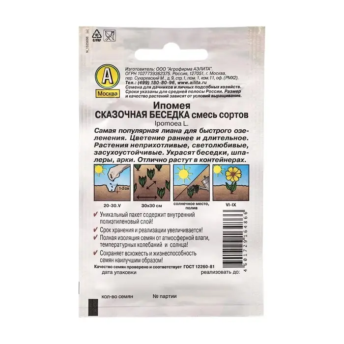 Семена Цветов Ипомея "Сказочная беседка", смесь сортов, 15 шт