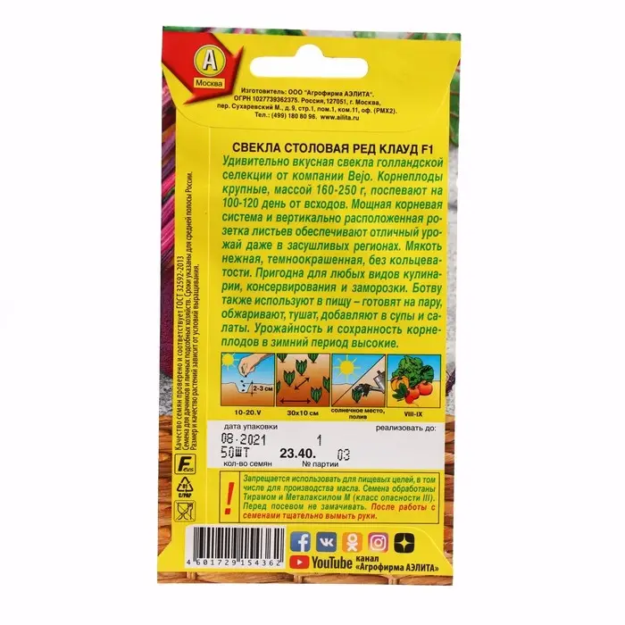 Семена Свекла столовая "Ред Клауд", F1, ц/п, 50 шт