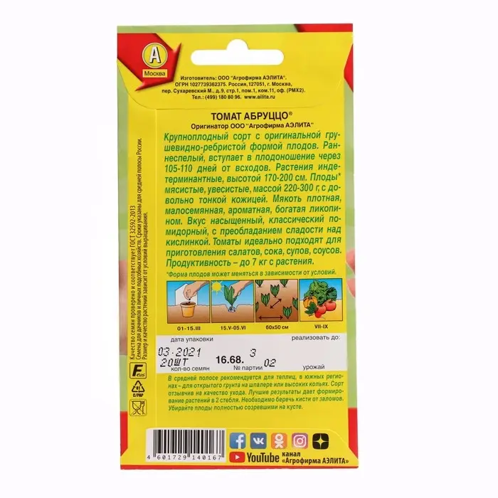 Семена Томат "Абруццо", ц/п, индетерминантный,высокорослый, 20 шт