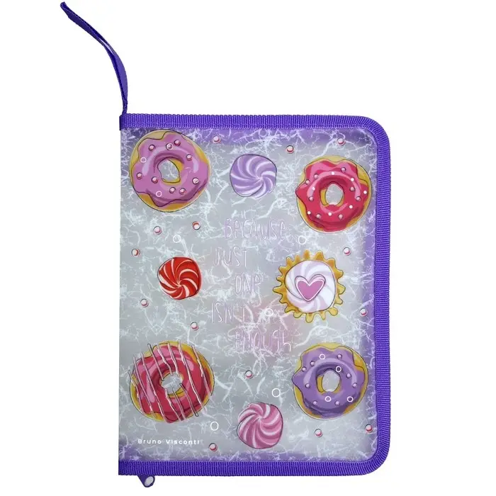 Папка пластиковая А5, молния вокруг, 400 мкм, "Сладкое настроение. Пончики"