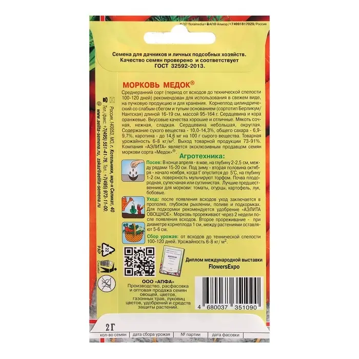 Семена Морковь "Медок", 2 г
