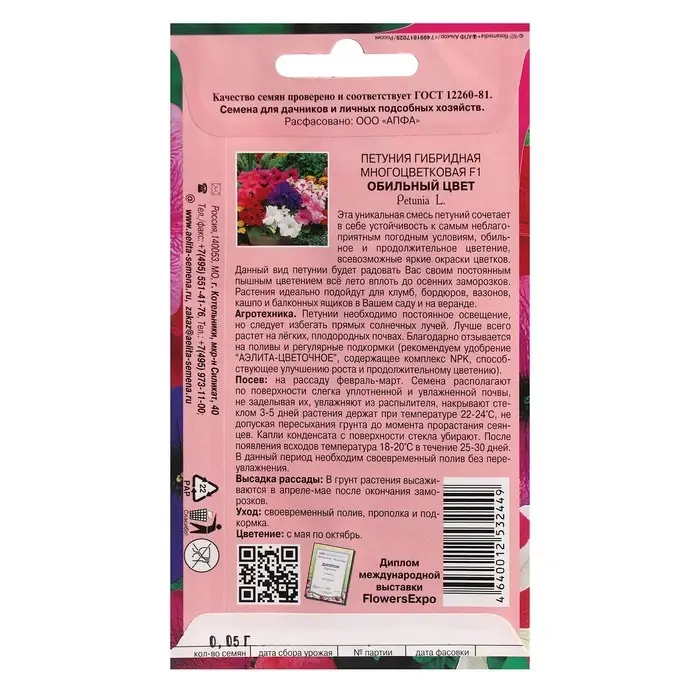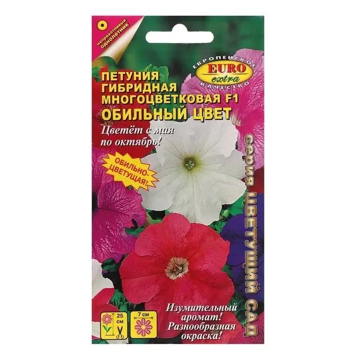 Семена цветов Петуния "Обильный цвет", F2, многоцветковая, смесь, 0,05 г