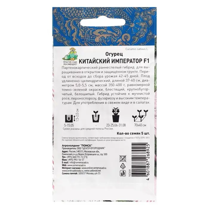 Огурцы "Китайский император" отличаются не только своей внешней красотой, но и непревзойденными вкусовыми качествами. Их мякоть поражает своей хрустящей текстурой и ярким, освежающим ароматом. Идеальны как в свежем виде, так и в различных кулинарных рецептах. Этот сорт F1 гарантирует вам стабильно высокие урожаи и отличное качество плодов. Приобретая набор из 5 шт., вы сможете насладиться всей палитрой вкусов и ароматов этого удивительного овоща. Откройте для себя восточную роскошь с огурцами "Китайский император" - истинным воплощением гармонии и изящества!