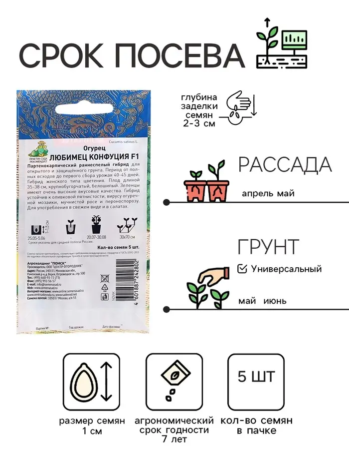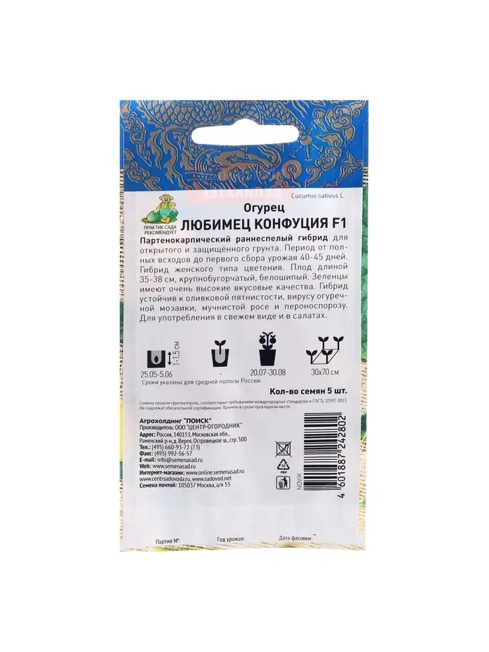 Семена Огурец "Любимец Конфуция", F1, 5 шт