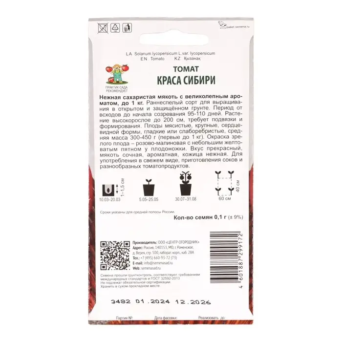 Семена Томат "Краса сибири", 0,1 г