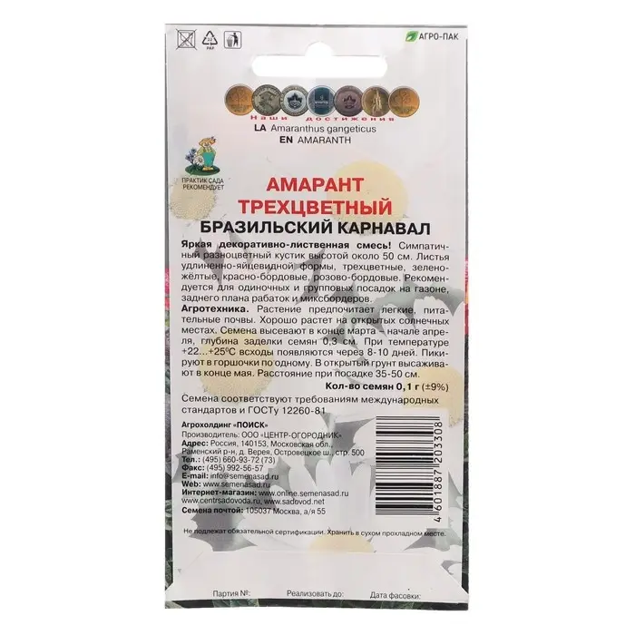 Семена цветов Амарант трехцветный "Бразильский карнавал", 0,1 г