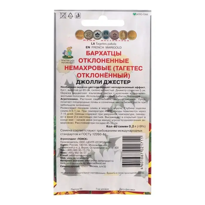 Семена цветов Бархатцы отклоненные немахровые "Джолли Джестер", 0,2 г