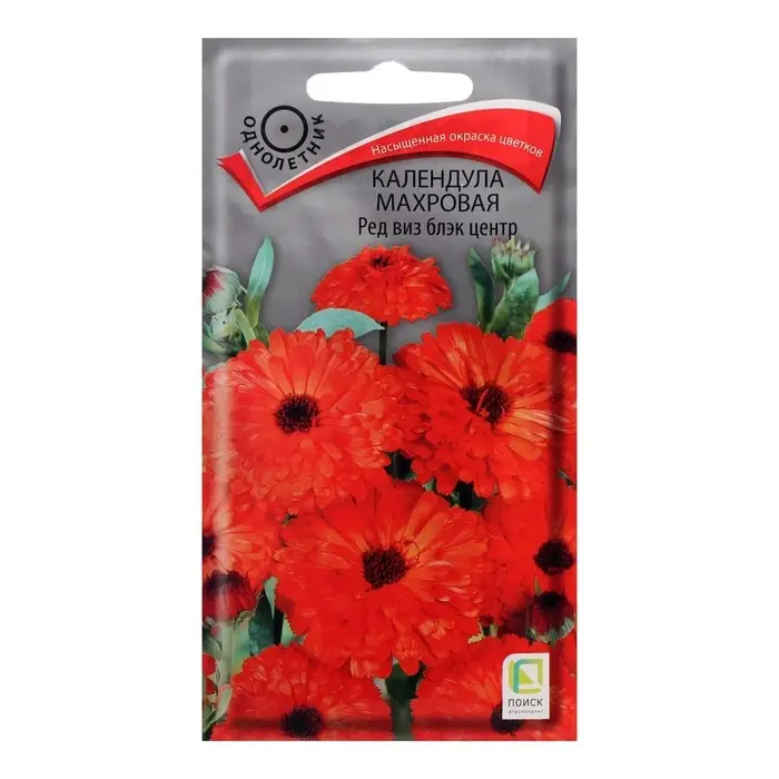 Семена Цветов Календула "Красная с чёрным центром",набор 5 шт