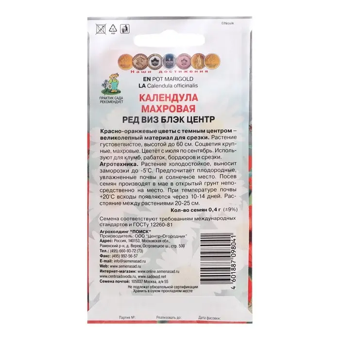Семена цветов Календула махровая "Ред виз блэк центр", 0,4 г