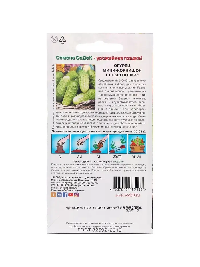 Семена Огурец "Сын полка "F1 0.3 г