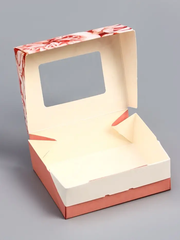 Коробка складная, крышка-дно, "Цветочки", 24 х 17 х 8 см с окном