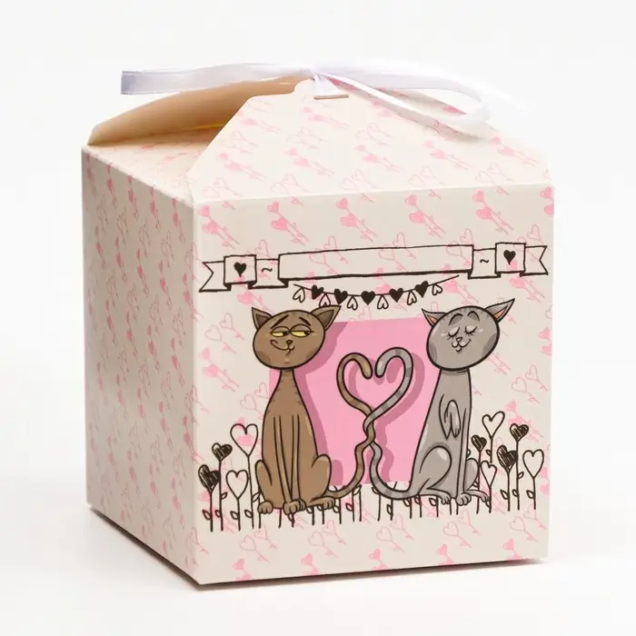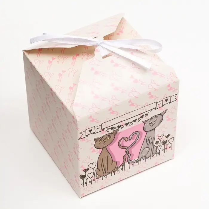 Коробка складная изготовлена из плотного картона. Прекрасно подойдет для десертов, можно использовать для праздничного декора.