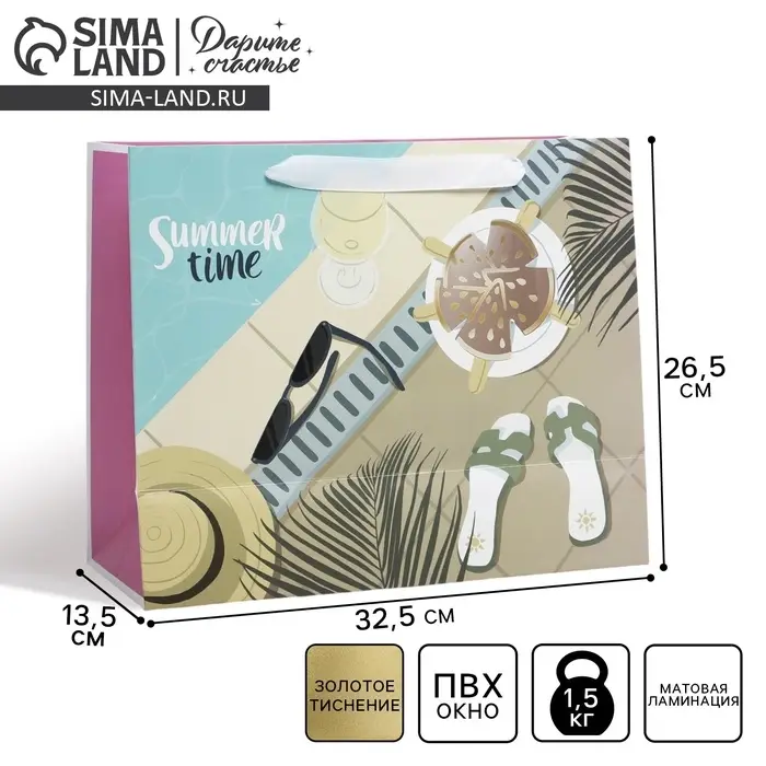 Пакет подарочный ламинированный с пластиковым окном, упаковка, «Летние истории», 32.5 х 26.5 х 13.5 см