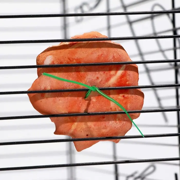 Удобное крепление позволяет закрепить камень на прутьях клетки.