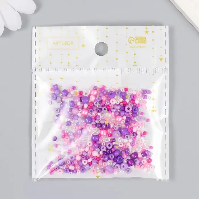 Бисер стекло 6/0 - 15/0 «Ассорти фиолетовое» d=1.5-4 мм, н-р 10 г