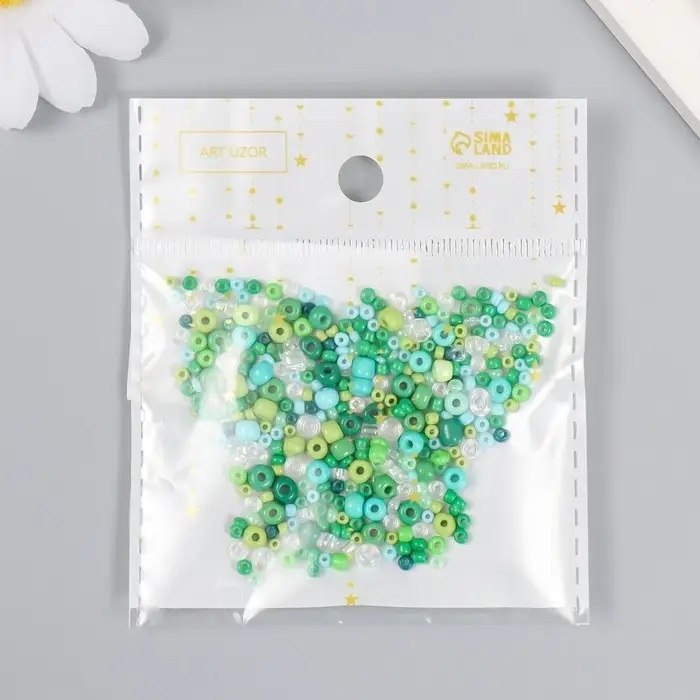 Бисер стекло 6/0 - 15/0 «Ассорти зелёное» d=1.5-4 мм, н-р 10 г
