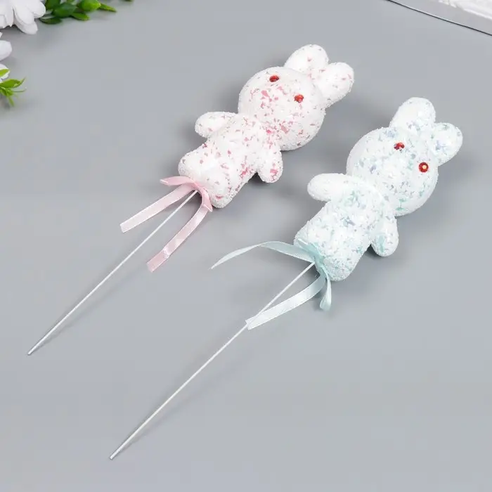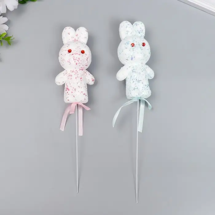 Набор топперов для украшения «Зайчата: посыпка, блеск», 2 шт., розовый, голубой, 12 см