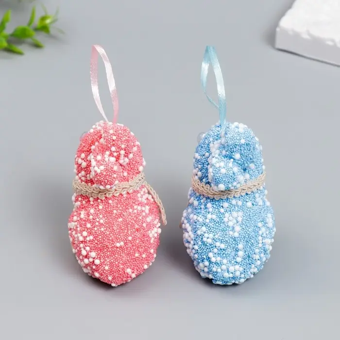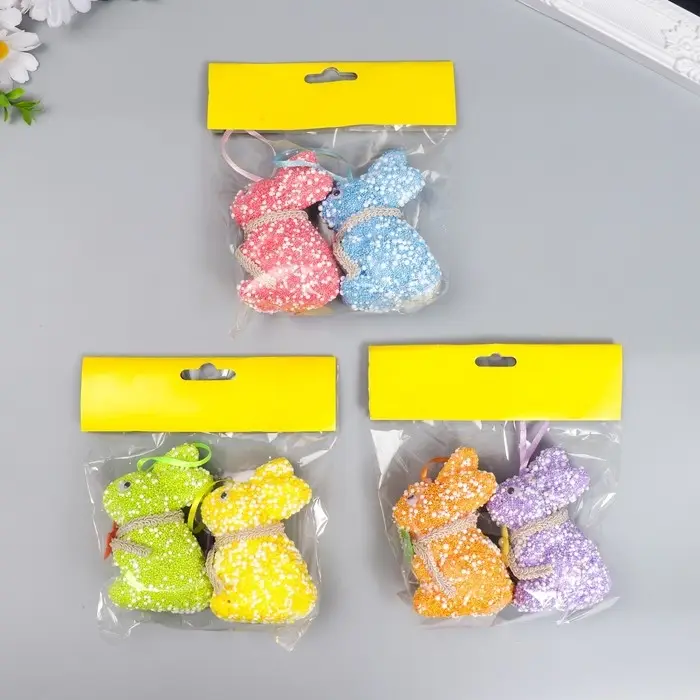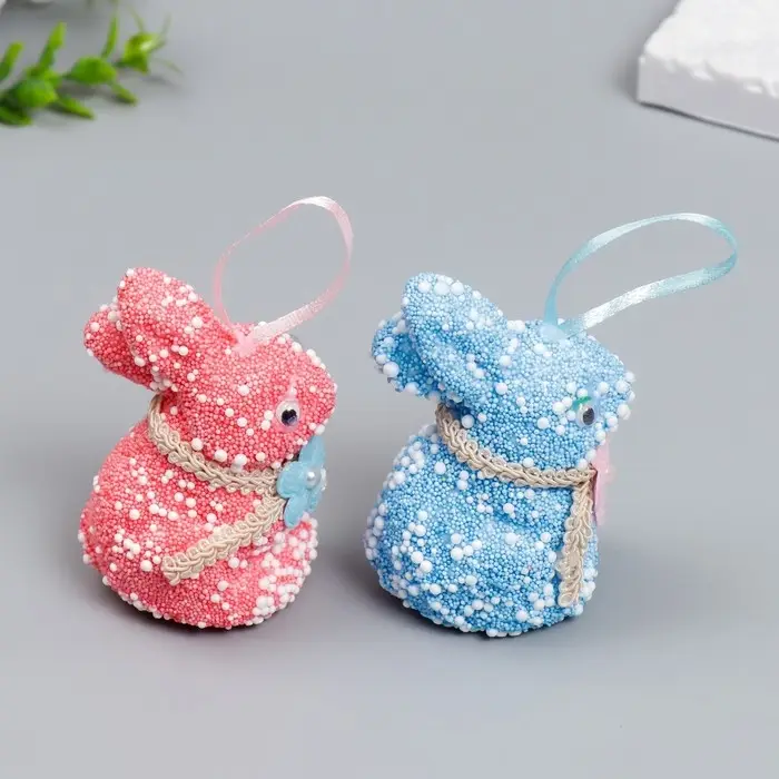 Подвесное украшение пасхальное «Кролик: посыпка, цветочек на шее», набор 2 шт., 9 см, МИКС