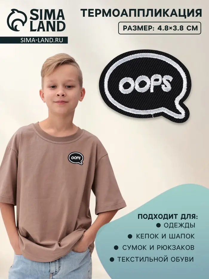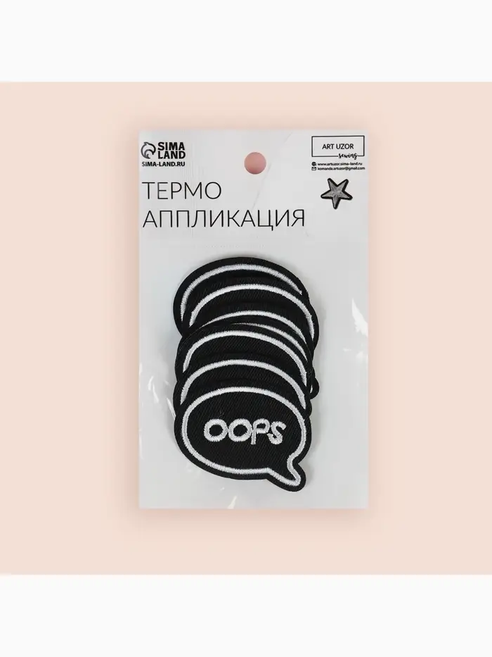 Термоаппликация Oops, 4.8×3.8 см, фасовка 10 шт., чёрная