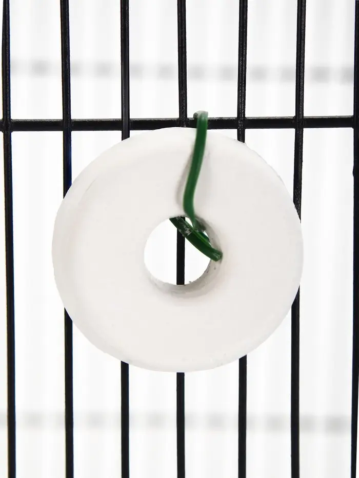Удобное крепление позволяет закрепить камень на прутьях клетки.