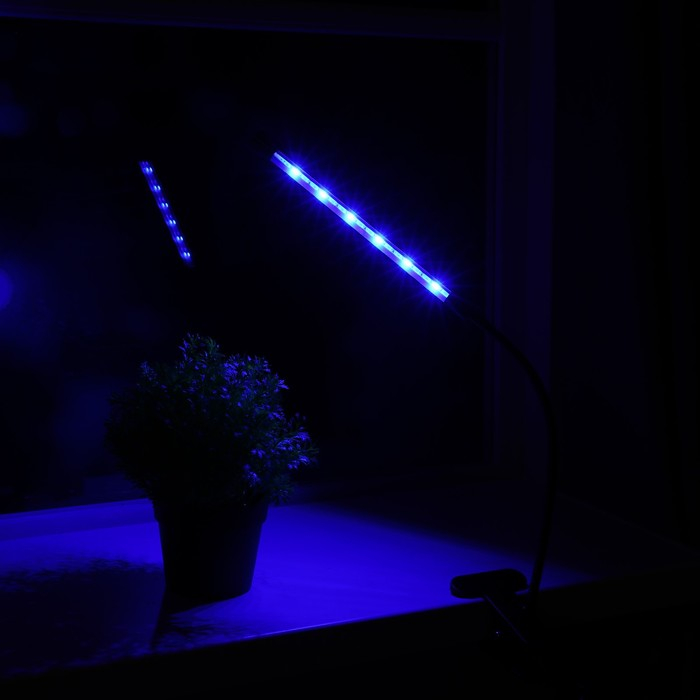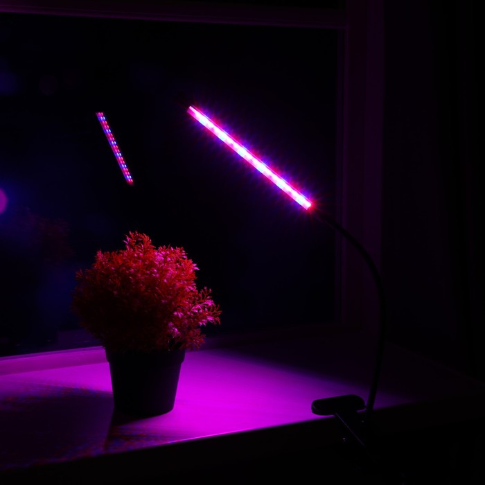 Фитосветильник светодиодный, 9 Вт, 250 мм, IP66, 5 В, USB, биколорный, прищепка, с таймером