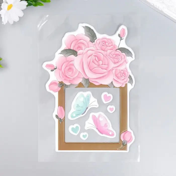 Наклейка на выключатель "Розы и бабочки" окно 8,5х8,5 см, объемная 26х16,5 см