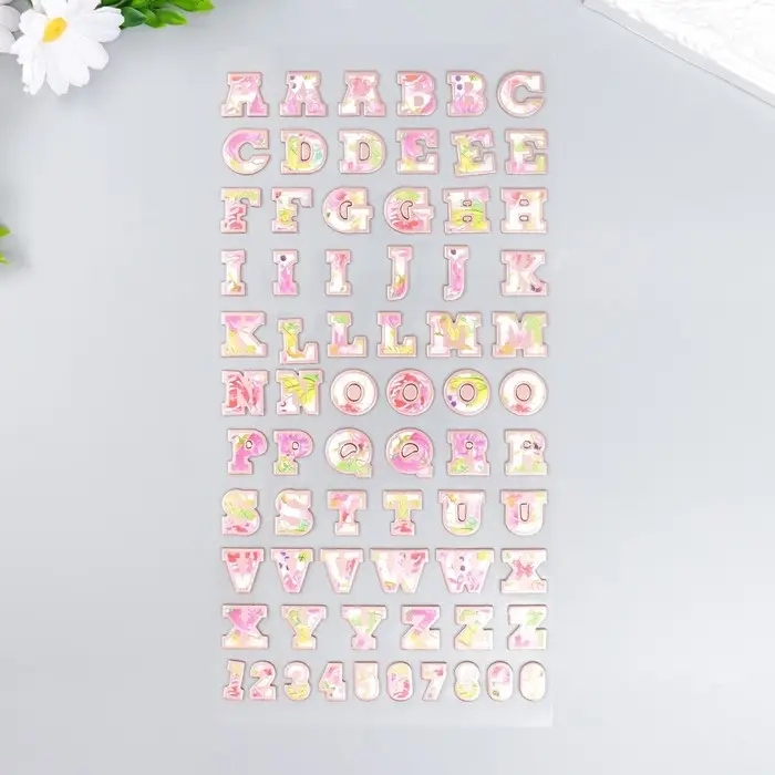 Наклейка пластик "Английский алфавит и цифры. Цветы" 31х14 см